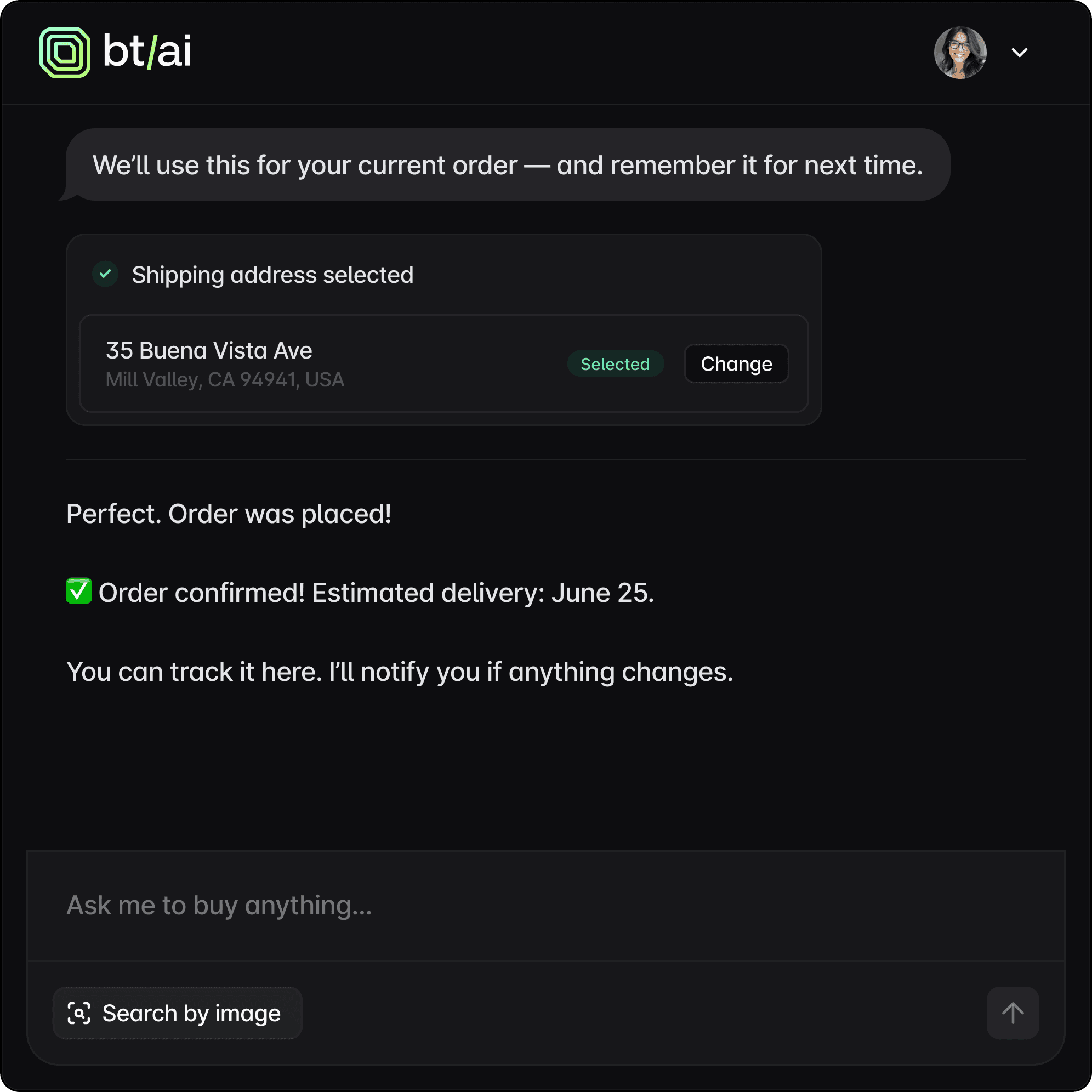 We return the confirmation so the agent can close the loop seamlessly and transparently. Every party gets what they need, without added coordination or manual steps