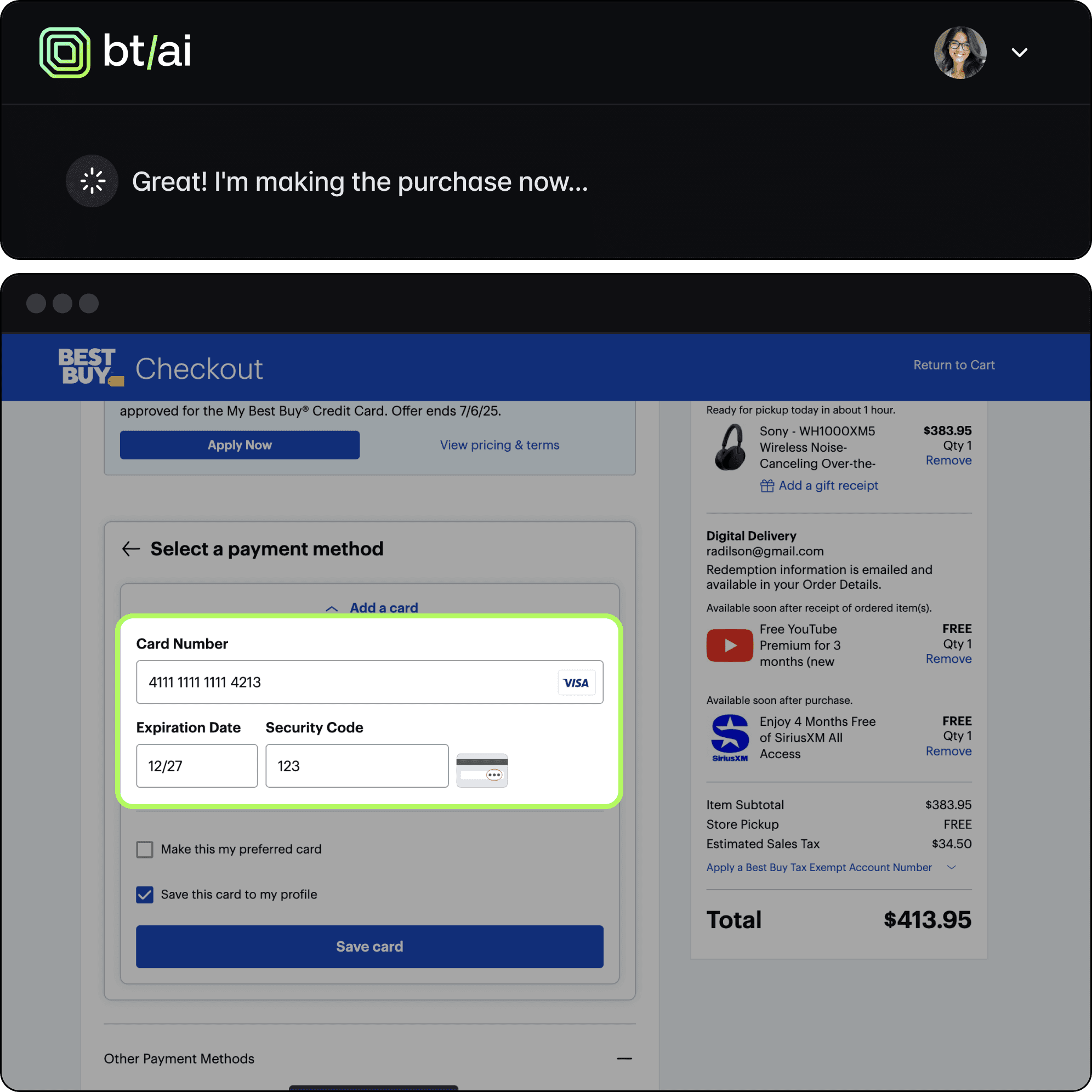 The agent captures the user’s intent to “buy this for me,” which is where Basis Theory steps in.